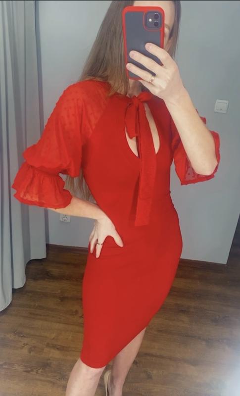 Сукня в рубчик -трикотаж Спереду завязується, рукава чверть, йдуть в горошок з цікавим відшивом пишного рукава !Є додаткові відео )