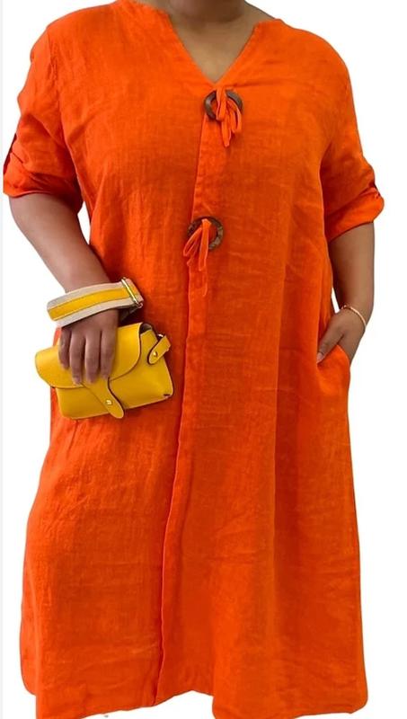 Красивое льняное платье большой выбор расцветок . Платье имеет боковые карманы и красивые пуговицы. Эффектное и стильное, будет хорошо смотреться на любой фигуре.