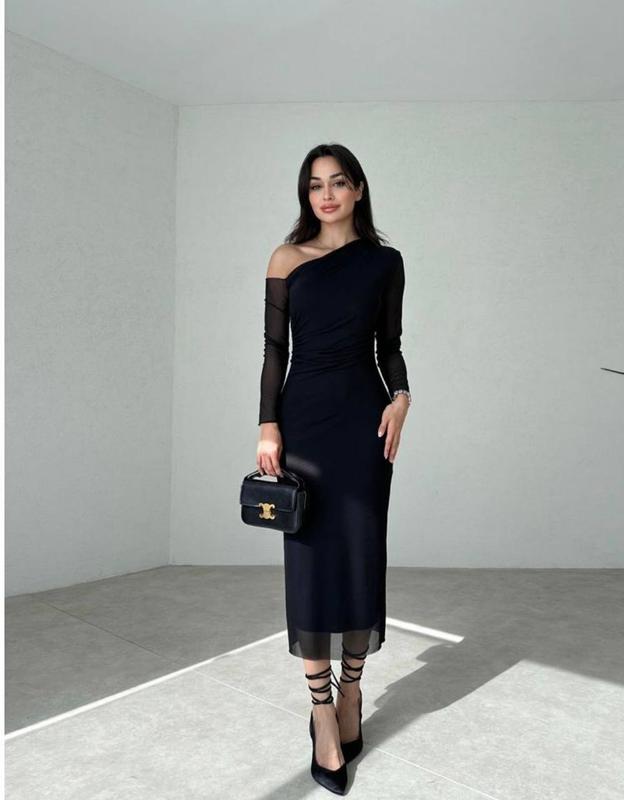 Изысканные платья ❤️❤️❤️ Очень красивая и стильная модель, базовый черный цвет • производство Турция 🇹🇷 • длина миди • материал - сетка+подклад • размеры S M L Цена :1260 грн #сетка #черный #харков #brand_143