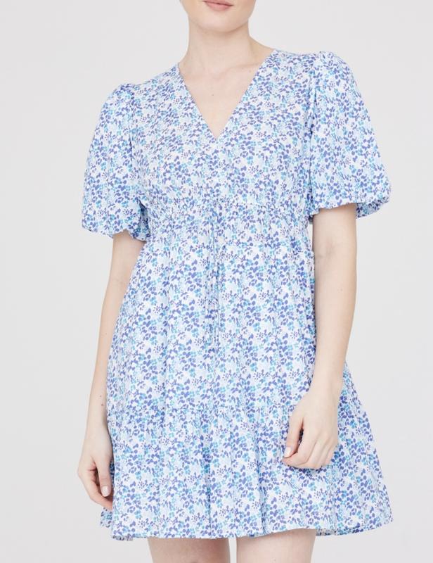 V-подібний виріз Нормальна посадка А-силует 100% бавовна Розтягнути Рукава буфи Висока талія Довжина до середини стегна Короткі рукави Резинка на талії Візерункова 100% бавовна Розмір XS