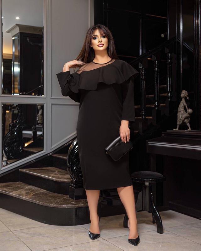 Сукня #3 Ткань: костюмка + сетка Цвет: черный ✅️ 50 Ог-104, от-100, ос-110, длина 106 см ✅️ 52 Ог-108, вот-104, ос-114, длина 107 см ✅️ 54 Ог-112, вот-108, ос-118, длина 108 см 🏷 1200 грн