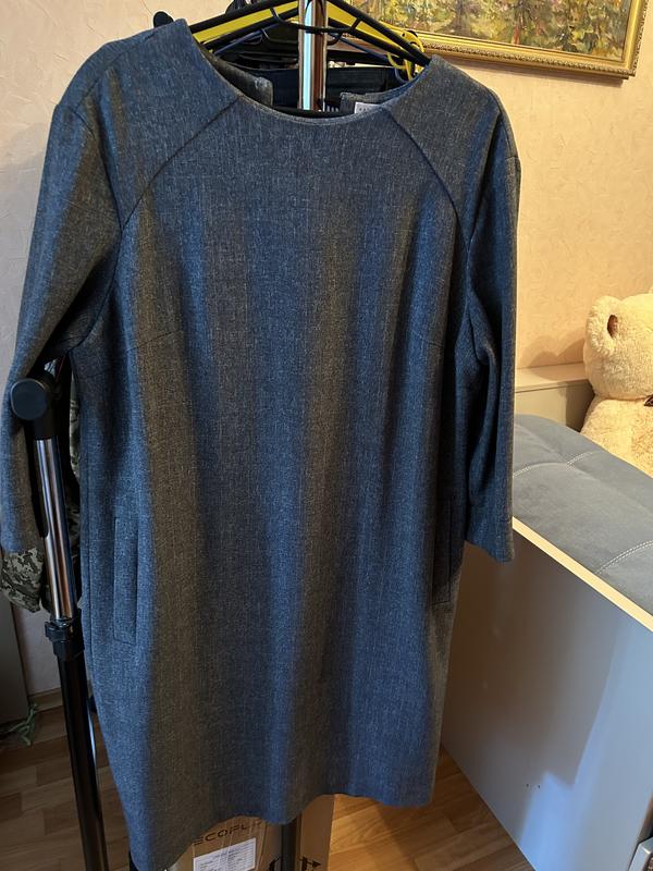 Сукня сірого кольору, діловий стиль, футляр Фірма Natali Bolgar Є два кармани Рукав укорочений-58 см Ширина рукава 18 ( пів обхват) Тканина добротна, не мнеться Довжина 100см ПОГ 57