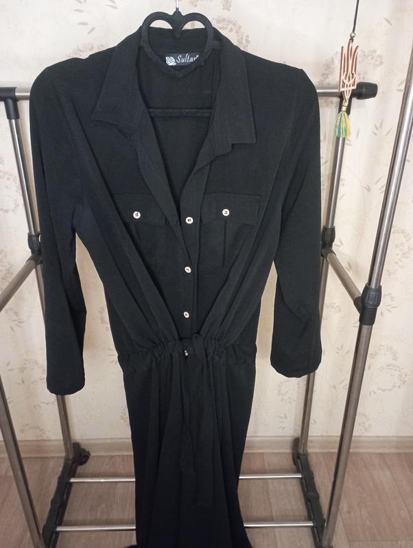 Черное платье миди легкое. Имеет пояс, рукава с подворотом пог 58 пот 58 пос 70 длина 136