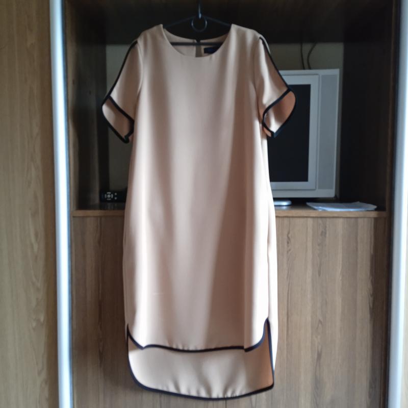 Платье турецкого производителя.Перед чуточку короче как зад.Одите два раза в идеальном состоянии. Ног 48-49см Нот 51-52 см Длина спереди 90 см Длина сзади 103см Платье свободного кроя Плечи 34,5см