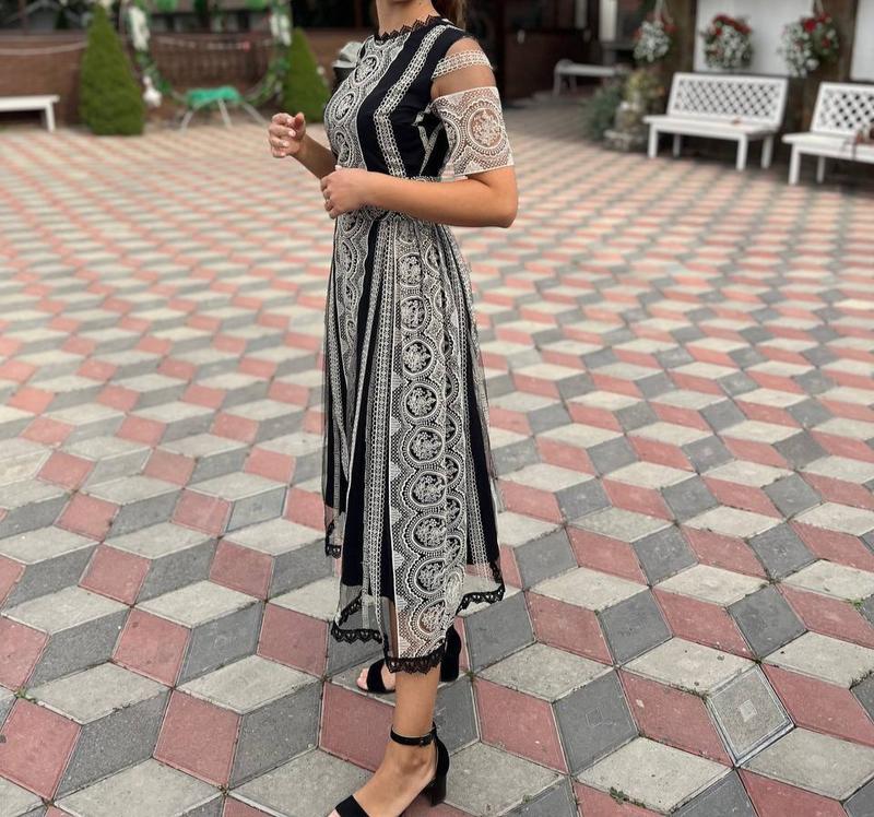 платье длины миди, в сочетании черного и бежевого цветов, размер S