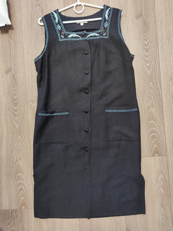 Платье из натурального льна, в очень хорошем состоянии, лишь не хватает пуговицы Украшена красивой вышивкой. Длина меди