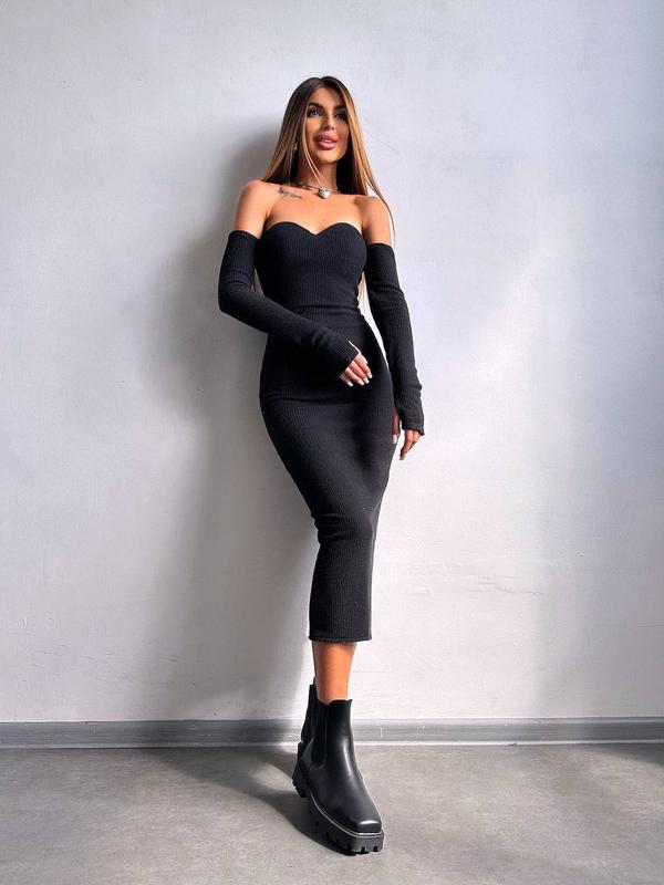 Трикотажна сукня міді з чашечками ▫️тканина: утепленный трикотаж рубчик ▫️розмір: S и М (L + 200 грн)