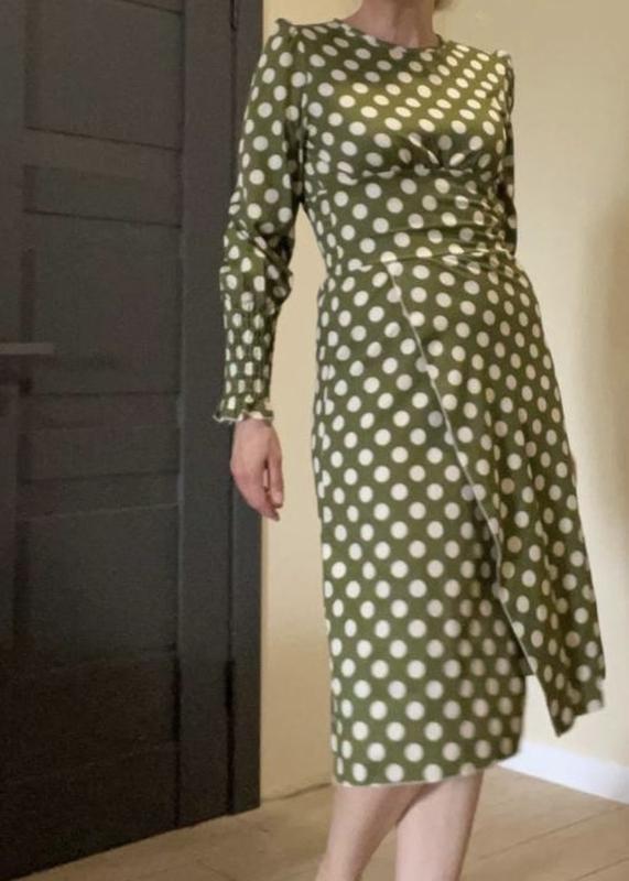 Платье элегантное горох полка дот хаки