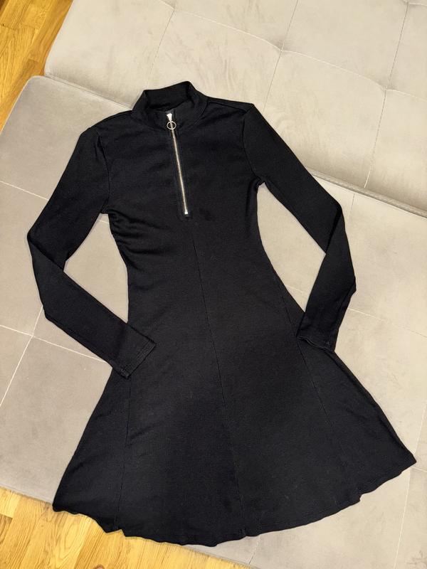 New look базовое платье в рубчик с замочком под горло черного цвета Размер S, небольшая M Длина 90см