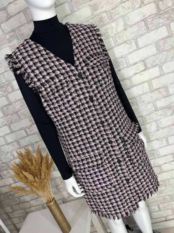 платье твидовое в гусиную лапку размер : 14 имеет четыре кармашка можно стилизировать как жилет пог 55 пот 50 длина 87