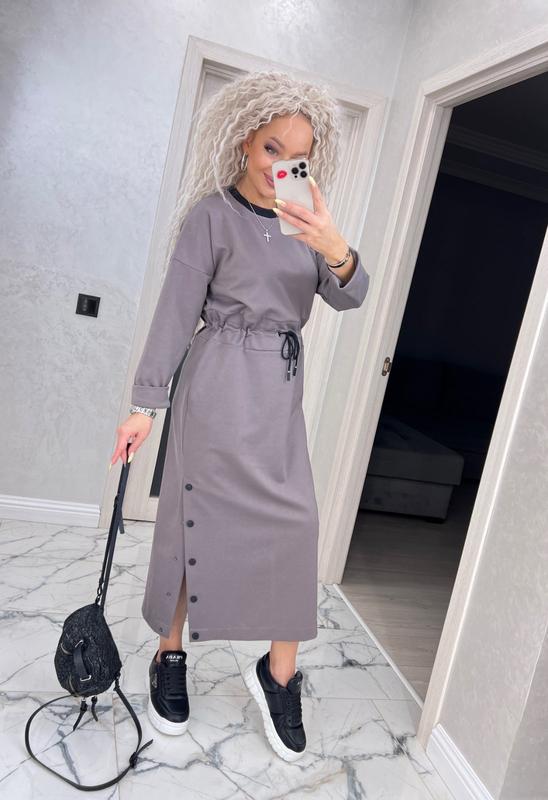 Осеннее платье класса люкс Талия на кулиске, регулируется фасон оверсайз или приталенный. Рукав можно регулировать отворотом на 3/4, что сделает ваш образ более легким и кокетливым. Рабочие кнопки на ножке, вы можете сделать сексуальный разрез или оставить закрытым. Идеальный вариант платья на каждый день в прохладные осенние дни или сексуальное приталенное платье с разрезом на любой праздник – собирай сама и играй со своим образом в нашем шикарном платье. Материал: итальянский трикотаж Джерси. Не линяет, не скатывается, легкий и приятный на ощупь. Размеры: 42-44, 46-48, 50-52 Цвета: джинс, черная, морская волна, беж, серо-шоколадный