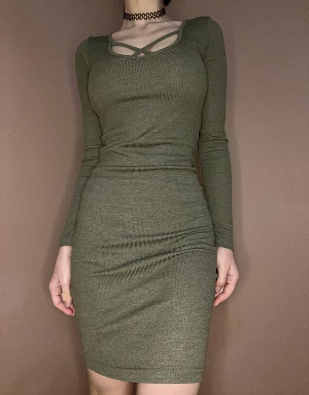 Дуже гарна сукня в рубчик з цікавим декольте. Чудово сидить на талії. ! Колір хакі !, на жаль, камера досить погано передає( Розмір: XS Зріст моделі 1.60 довжина: 90см груди:31см тягнеться до 41см талія: 27 см тягнеться до 36 см плечі:33см тягнеться до 45см рукав: 60см