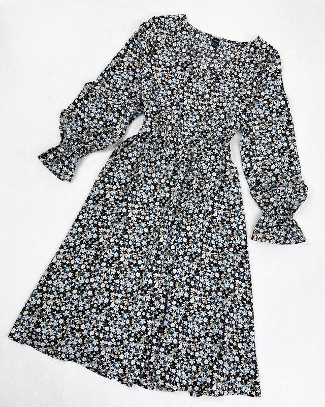 Сукня в квітковий принт Shein Тканина поліестер Розмір М Довжина 109 см, плечі 39 см, пог 54 см, пот 35-50 см (резинка), в стегнах вільно, рукав 6 см