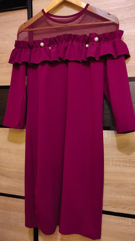 Праздничное платье миди с сеточкой на плечах. Рукав 3/4. Отлично подойдет как на каждый день так и на праздник Длина 92см Обхват под подмышками 46 см Омобхват бедер 50 см Низ 50 см Длина рукава от плеча 45 см Ширина рукава 15 см