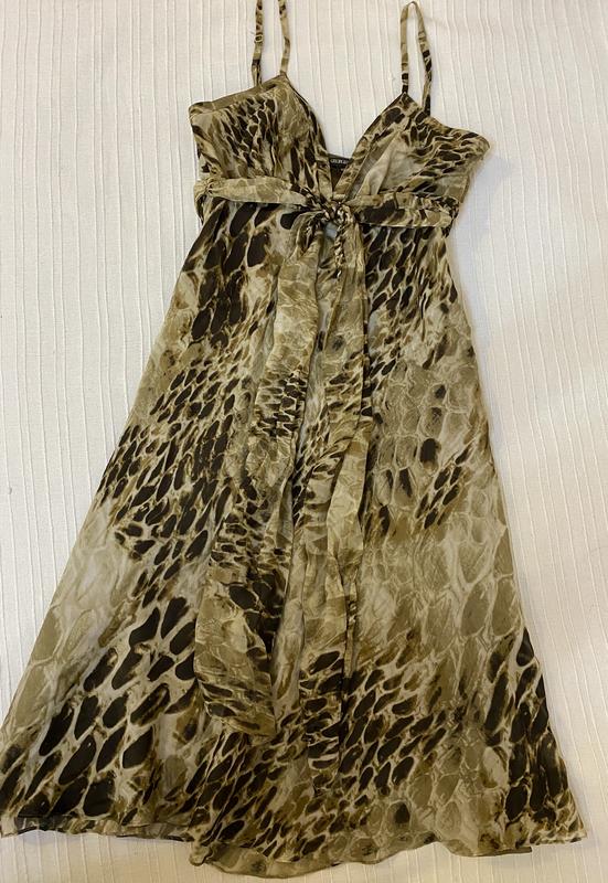 Платье миди из натурального шелка Georges Rech Платье на бретелях, книзу расширенное, крой по косой. Тканина: шифон, 100% шовк Подклад: атлас, 100% шелк Размер 40 Длина 113 см ПОГ 48 см Талия завешена Шов под бюстом 40 см Состояние новой