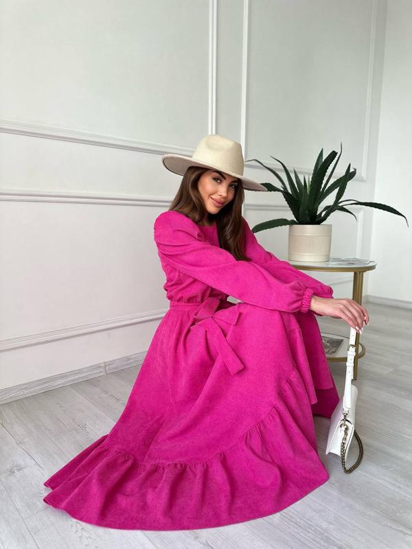 Трендовое платье миди ▫️Размеры: 42-44, 46-48, 50-52 ▫️Ткань-вельвет на х|б основе 🎀длина миди, 120 см 🎀рукав фонарик На талии резинка, одевается под пояс 📍