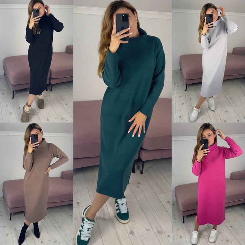 Плаття Тканина ангора в'язка (щільна) Колір чорний, смарагд, мокко, малиновий, світло - сірий Розмір 42-44,46-48,50-52 Сукня прямого крою, з двома кишенями, горловина хомут Ціна: 850 грн