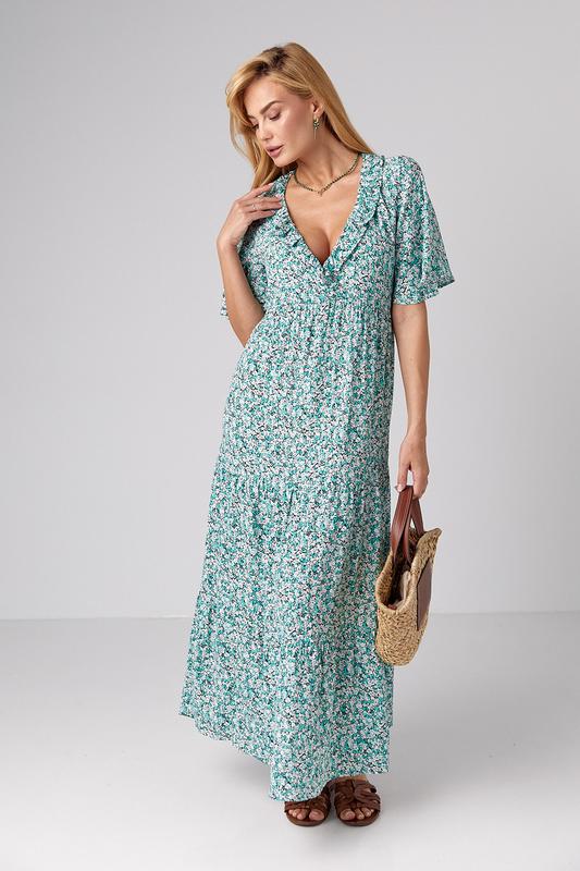 Довга сукня з оборкою та квітковим принтом - зелений цвет, xs (є розміри)