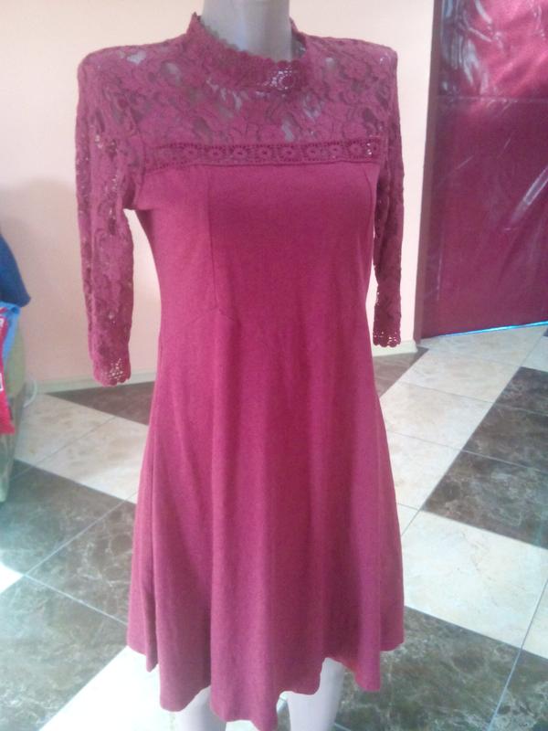 Трикотажне плаття з гіпюром Плечі - 37, Груди - 86, Талія - 80, довжина рукава - 35, довжина сукні - 90см