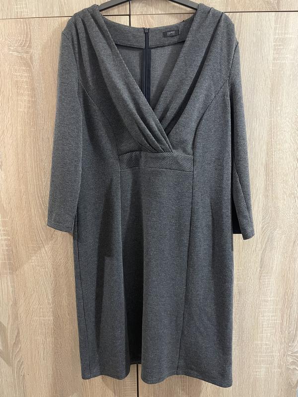 Платье миди. Замеры: длина - 91, ОГ- 98, ОБ - 100, От - 86, рукав 3/4 - 48, тянется. Ткань трикотаж, довольно плотная, держит форму, тянется. Бирка со составом ткани срезана. Дефектов нет