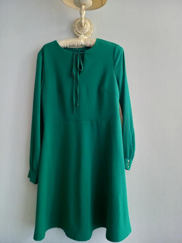 Чудова смарагдова сукня. Надягалась двічі. Стан нової. На бірці написано 46, насправді розмір М, європейський 38. Всі заміри видно на фото. Тканина - поліестер.
