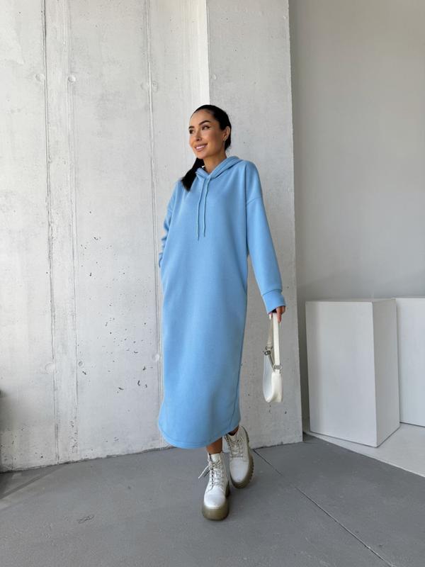 Сукня з капюшоном та кишенями в стилі OVERSIZE ♥️ ▫Мод 116 ▫Тканина: тринитка на флісі ▫Розмірний ряд: 1(42/46) 2(48/52) ▫Заміри 📐 Розмір 1/2 ОГ 105/115 довжина рукава 68/70 довжина сукні 120 ▫Кольори: графіт, чорний, мокко, хакі, голубий 🏷845 грн Тепле, м'яке та приємне до тіла