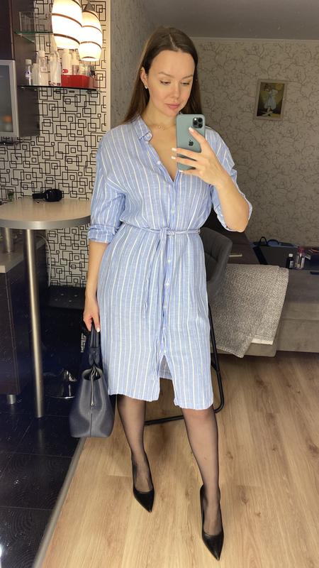 Платье-рубашка женская голубая в белую полоску, натуральный хлопок, состояние хорошее. Размер М