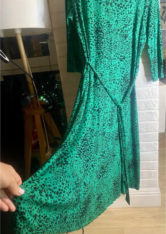 Платье в трендовый леопардовый принт. Очень красивый цвет. Вискоза с эластаном. На ножке спереди разрез. Открытая спинка. Горловина спереди до дочери, на спинке V-образная. ОГ 51 см тянется до 61 см, ОБ 55 см, тянется до 75 см, рукав 62 см, длина 120 см.