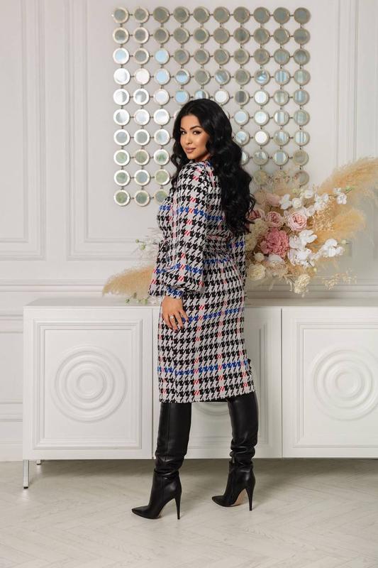 Сукня Модель № 7655-1 ЯКІСТЬ ВІДМІННА Розмір : 46-48; 50-52; 54-56; 58-60 Тканина : ангора софт ( гарно тягнеться ) Довжина сукні : 115 см. Довжина рукава : 69 см. Стильна сукня приталеного покрою , з обʼємними рукавами на манжеті , та поясом з основної тканини . Гарна тканина , приємна на дотик , високої якості , не кашлатиться , гарно тягнеться .