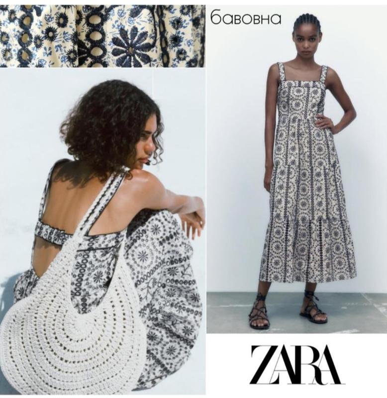Zara невероятное хлопковое платье миди с ажурной вышивкой