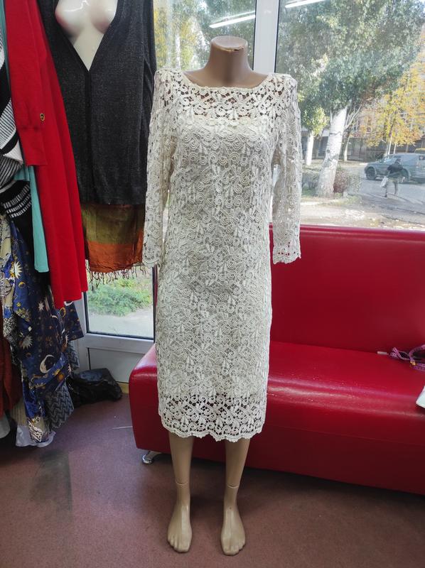 Святкова гіпюрова сукня, з рукавом, бежева,розмір 42, 44,на підкладці.