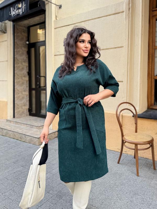 Ця вишукана сукня-саме для ТЕБЕ!!! ❤️❤️❤️ Сукня❤️❤️❤️ ✅ Якість -люкс!!! Модель: 61 Тканина:мікровельвет(не тягнеться) Ціна:🔥🔥🔥🔥999грн Розмір:48-50,52-54,56-58 Колір: капучіно,пляшка, синій Виміри: 48-50 ОГ-112см ОТ-108см Об'єм стегон:114см Довжина:107см 52-54 ОГ-118см ОТ-116см Об'єм стегон -120см Довжина -108см 56-58 ОГ-128см ОТ-124см Об'єм стегон -132см Довжина -110см Сукня  попереду має дві фігурні накладні кишені,позаду-розріз,фігурна горловина.(Без застібки).Рукав -три чверті. На фото модель представлена в розмірі 48-50!!!