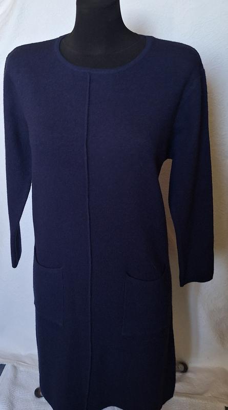 Платье короткое, теплое,темно синего цвета. ПОГ 52, длина по спинке 90 см длина рукава 50 см.