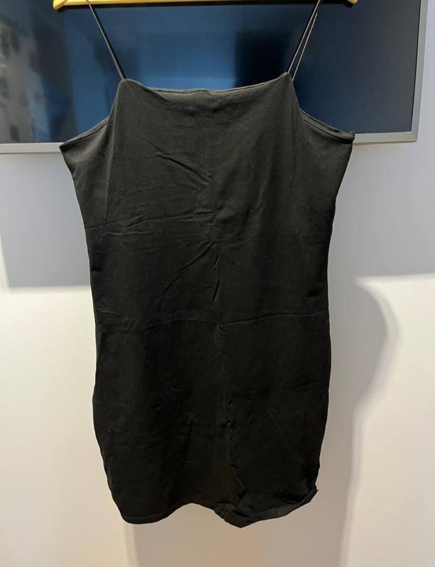 Платье трикотажное мини на тоненьких брителях Черный цвет Размер 50-52 Тянется Жодного разу не одягалось