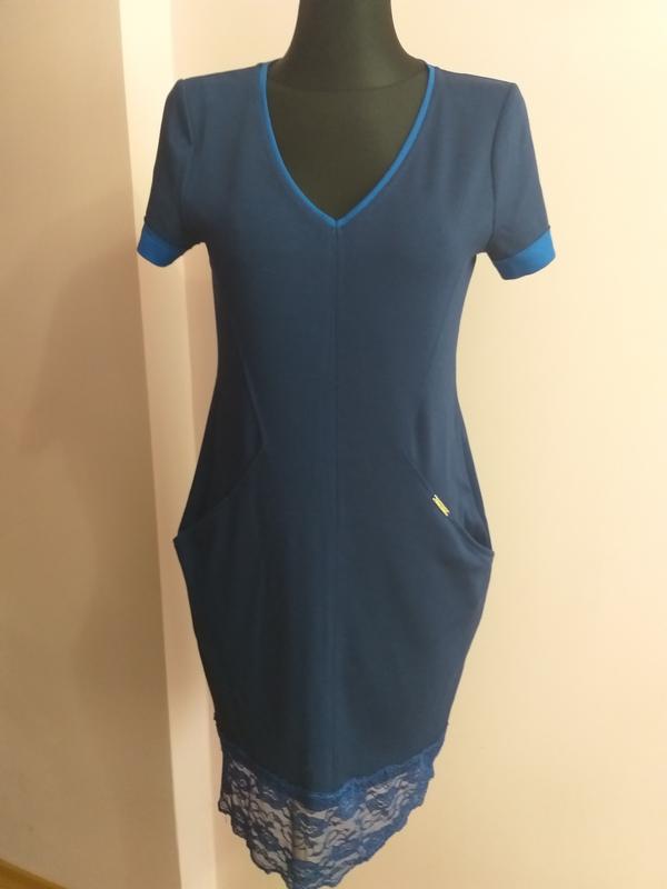 Трикотажное платье футляр с кружевом. Качественная, неординарная.Приведите исходное платье 86 к кружеву,меры пог 45-50.пот 43-46см, поб 52-55.Длина от плеча 86 до кружева, замерзало 12 см.Без дефектов.