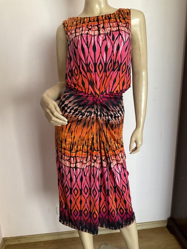 Ткань средняя, без дефектов. Без подкладки. Есть драпировка на животике. Лежить красиво. Замеры в груди 56-60см в талии 52-54см в бедрах 61см длина 107см.рекомендую на немного меньше размер 24:10:24