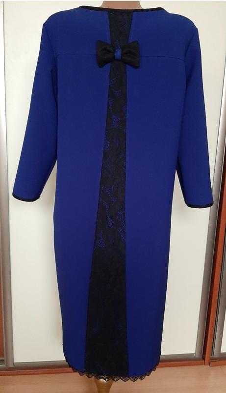 Элегантное красивое платье цвета электрик. Красиво ложится по фигуре. Идет на размер 50-52. Замеры изделия: объем груди 102 см, в бедрах 110 см, по низу 106 см, длина 104 см, длина рукава 46см и 34см (идет 3/4).