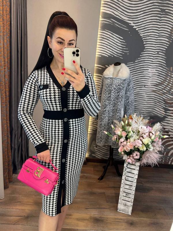 шикарное платье приталенного кроя с длинными рукавами, изящным вырезом на груди, удобных растягивающихся пуговиц спереди, отлично подчеркнет красоту вашей фигуры и отлично будет смотреться на вас на работе и отдыхе, она выполнена из приятного к тела качественного трикотажа машинной вязки с удивительно красивым принтом. размер 42-44 длина 102 см, объем груди 88-90 по изделию тянется до 98 см, талия 76-77 см, длина рукава от шеи 68-69 см код 0621