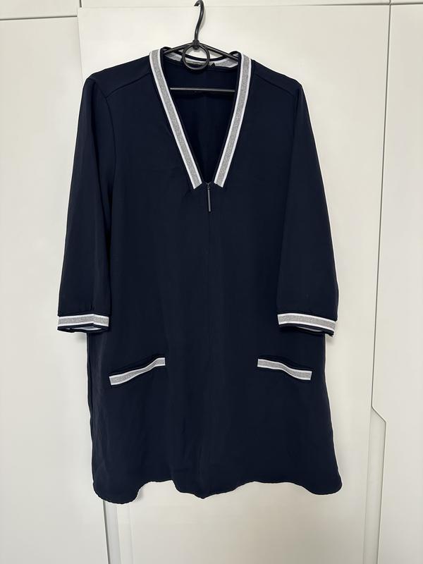Продам фирменное платье. В хорошем состоянии. Размер XL. Замеры: длина 87см.ширина под мышками 55см.рукав три четверти. Цвет темно синий.