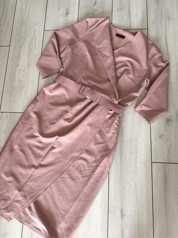 Женственное платье на запах с очень удачным кроем, которое способно скрыть недостатки и подчеркнуть достоинства. Пасок входить в комплект. Цвет - пудра. Замеры и фото на теле отправлю по запросу.