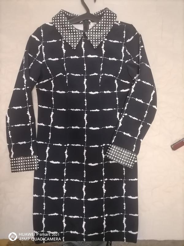 Очень крутое платье. Состояние новое. На рукавах и воротнике перфорирований кожзам. Качество! Ткань немного тянется.