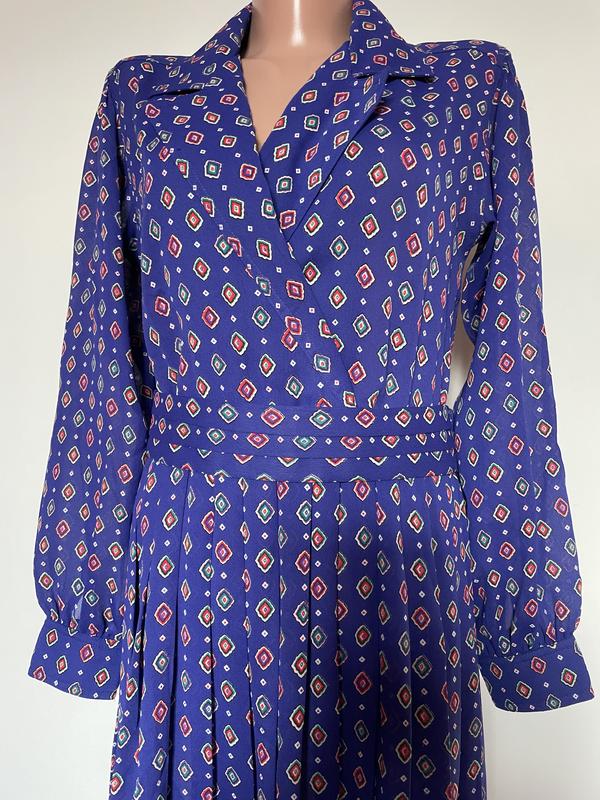 Красивое винтаж платье под пояс. Длина-106, отрезное по талии, юбка в складку-69, талия 39-44( по талии резинка). Грудь на запах, ПОГ-48. Плечи-38, рукава-56. Лёгкое. Полиэстер ‼️ оплата на карту Приватбанк. Через кнопку не отправляю‼️‼️‼️