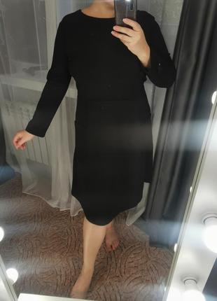 Нова сукня у стилі ретро. Колір чорний. По спині потаємна застібка. Є 2 кармани. Розмір Л-ХЛ. Тканина костюмка, трохи тягнеться. Заміри: - довжина 109 -довжина до талії 43 -рукав 55 -груди 102, - талія 86. Одягнена на зріст 170 см.