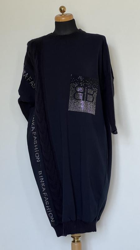 Артикул - 1726840 Тканина щільна, не просвічує. Прикрашена стразами Матеріал: Бавовна - 90%, Лайкра - 5%, Акрил - 5%. Розмір - 40/L/48 Заміри: Довжина: 105 см Напівобхват грудей: 70 см Напівобхват талії: 60 см Напівобхват стегон: 65 см