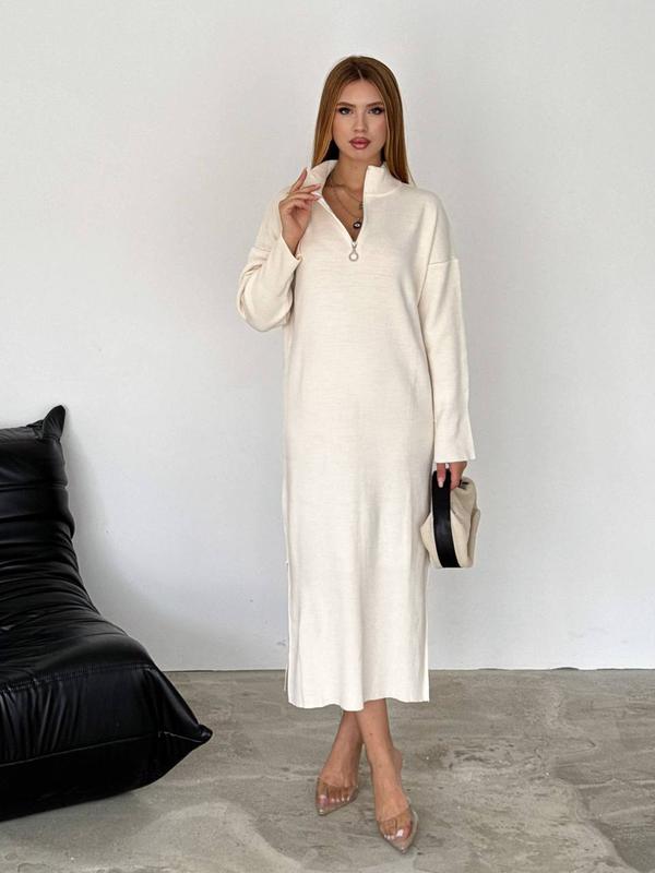 Платье миди в базовом цвете. Модель прямого кроя с круглым воротником, длинными рукавами. Базовый крой этого платья создает минимальный комфортный образ. Выполнили из мягкого трикотажного материала. • Размер универсальный 42-46 Длина ПОГ Рукав от шеи 23027