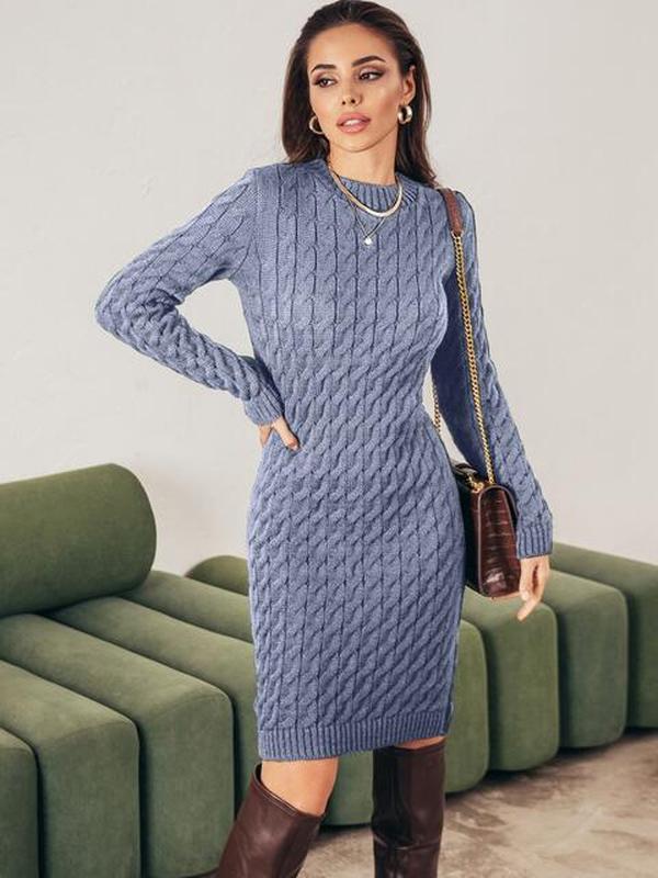 ‼️ОТПРАВЛЕНИЕ ВПРОДОВЖ 2-5 РАБОЧЫХ ДНЕВ!!️ Мягкое вязаное платье с круглой горловиной, платье выполнено узорами в виде небольших кос. Размер: 42-48 Цвет: бежевый, зеленый, синий. Состав: 70% акрил, 30% шерсть. Замеры изделия: длина по спинке – 97 см; длина рукава - 66 см. Арт. 90154/5016