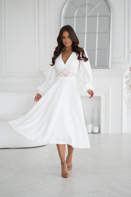 ☘️☘️☘️НОВИНКА ☘️☘️☘️ СУКНЯЯ С ВЫШИВКОЙ НА ТАЛИИ Модель 7541 Размер S (42),М (44),L (46) Цена 1650 грн Тканина: костюмка + вишивка Длина платья : 115см Рукава: 65 см Цвета: черный, молочный, бутилка __________________ Изысканное платье длины миди с контрастной вышивкой на талии. Глубокий V-образный вырез визуально удлиняет шею и добавляет образу нотку романтичности, а длинные рукава с легким объемом придают мягкость и плавность линиям. Пояс украшен контрастной вышивкой, акцентирующей талию и создающей гармоничный силуэт. Идеальный выбор для торжественных мероприятий, вечерних выходов или романтических свиданий. #костюм #платье #пояс #белый #черный #одеса #рекомендуем #наложенный_платье #brand_679