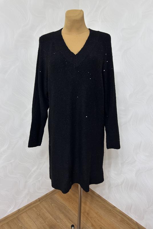 Трикотажний пуловер-сукня декорований мерехтливими паєтками,класичний чорний колір та нетрадиційно вільний фасон вже готовий стати найстильнішою обновкою вашого осіннього гардеробу🍂🍁🍂Почуватися впевнено з таким вбранням дуже просто, адже відчуття легкості ні за що не залишить Вас протягом усього дня♥️ Розмір вказаний eur 40-42,орієнтовно на 48/50 р,порівнюйте з вимірами зробленими по верху сукні 👇 ПОГ 53 см тягнеться до 65 ПОТ 53-65 ПОС 53-69 Довжина рукава від горловини 68 см довжина по спині від плеча 90 см 🍀🍀🍀🍀🍀🍀🍀🍀🍀🍀🍀🍀🍀🍀🍀🍀🍀🍀🍀🍀 Арт 5440.37