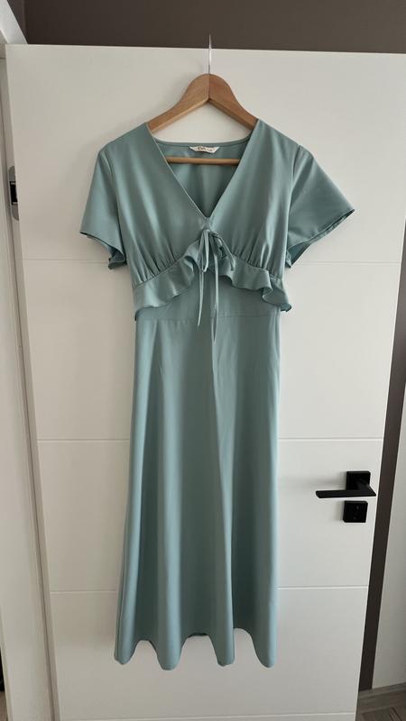 летнее платье, очень легкое и приятное к телу, размер S Цвет приятный, такой на 3 фото, так как на первых 2 снимках неудажен свет, способен сбросить фото как на теле выглядит
