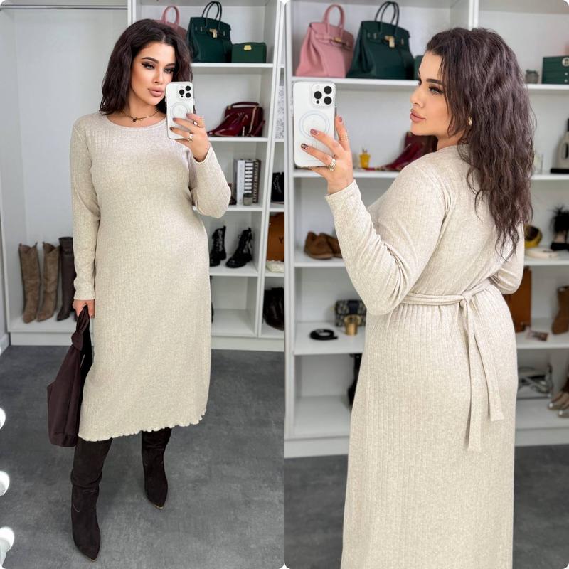 Тканина — Ангора- рубчик. Супер качество! Платье свободного кроя с поясом. Наслаждайтесь комфортом и теплом благодаря теплой ткани из ангоры. Почувствуйте непревзойденное удобство на весь день! Пасок мягко завязать спереди или сзади) Мод.372insp Размер : 48-52,54-58 Ткань: рубчик ангора люкс качества 🔥 Замеры: 48-52 ог от 100 до 118 см 54-58 ог от 120 см до 135 см Длина 120 см